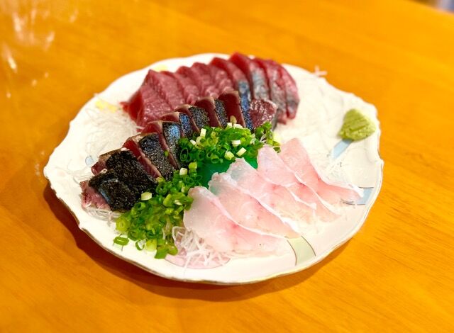 カツオはほどよく脂が乗っていて、春に食べたカツオとは少し違う味わい。