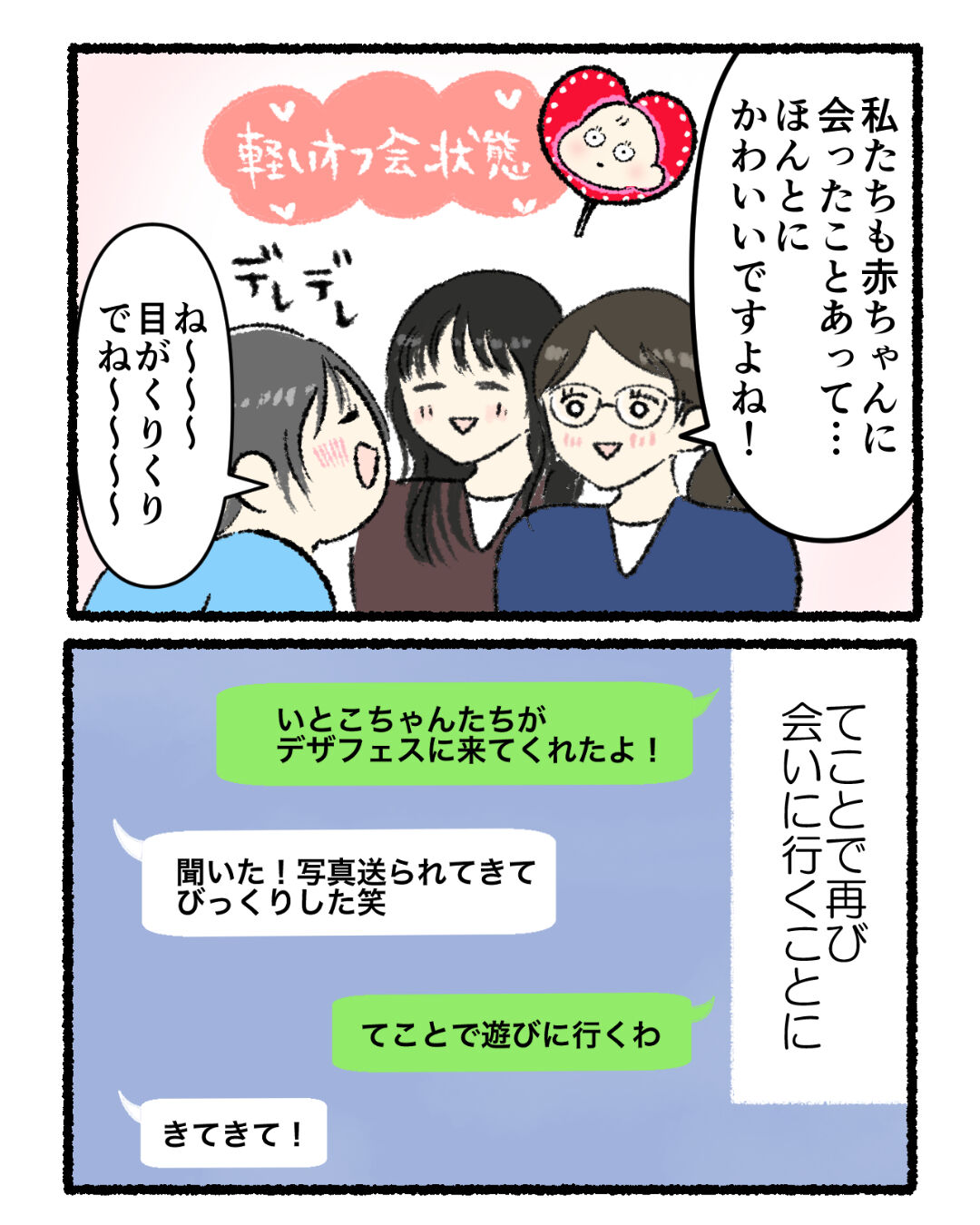 友達の赤ちゃんがかわいいって話をキャッキャしてました(楽しい)